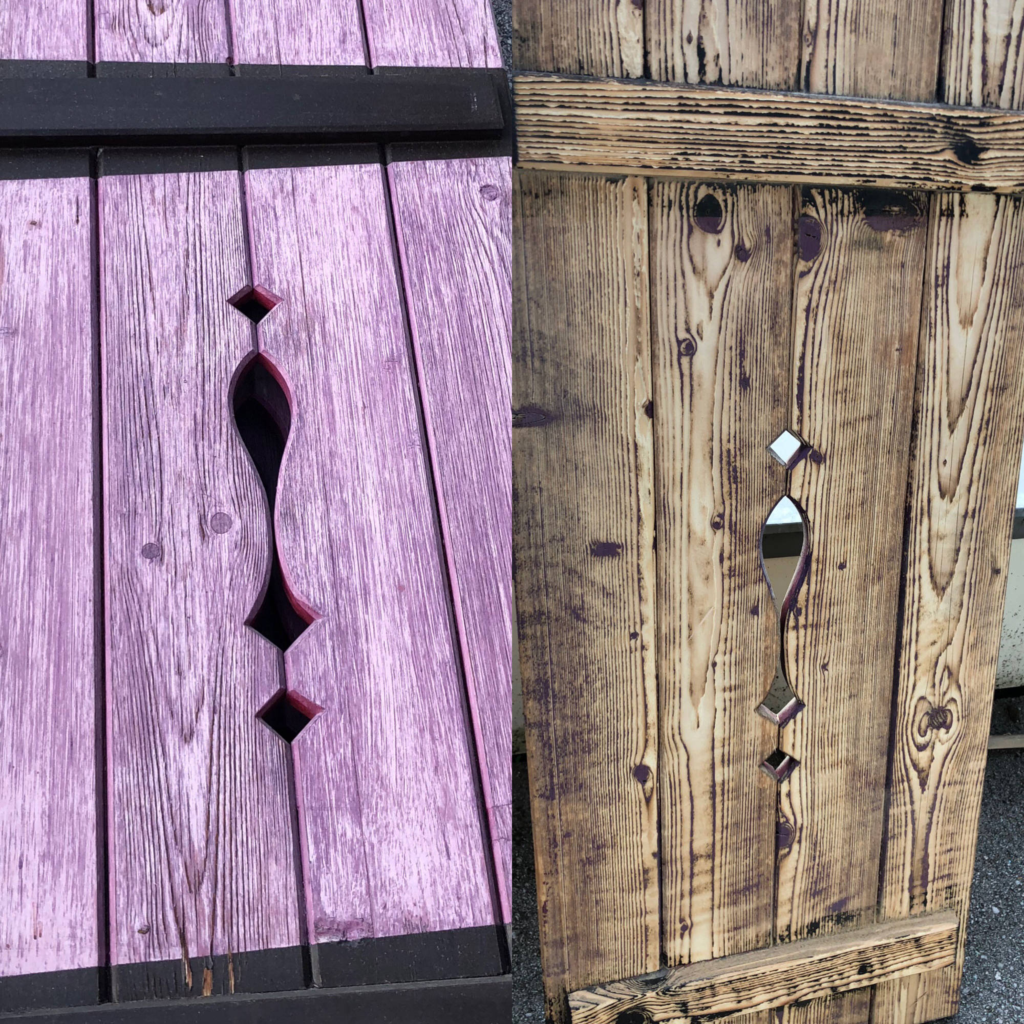 Alternative zum Sandstrahlen, Holz entlacken ohne Schmutz, es bleiben nur die Lackreste zurück das Trockeneis implodiert